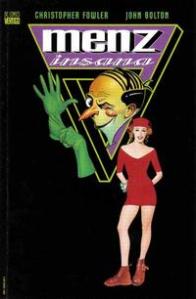Menz Insana was a whacky Prestige one-shot by Christopher Fowler & John Bolton. It’s about the realm of insanity, so of course it’s full of wild visuals and word salad dialog. Bolton uses a somewhat photo-realistic style, but chose to portray Menz (the male protagonist) in cartoon form, while Jaz (the female protagonist) is done realistically. Their story winds up having a point after all, as we finally learn what drove them insane and why they are together. The path there was so meandering that the shocking revelations didn’t have the impact they should have.