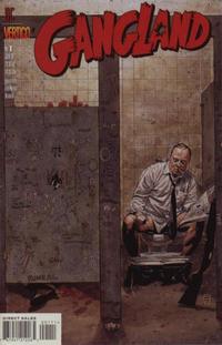 Gangland was another installment in the anthology series Vertigo was trying at this time. There were four issues, each containing 3 – 4 short stories. The creator bios appear in the beginning of each, written in the form of criminal records listing their alleged crimes. This was the most creative aspect of the series for me, along with the creative Mad Magazine-style foldout cover used for the first issue. Despite a stellar array of talent, none of the stories were standouts, with twist endings that simply were not surprising enough. Among the most successful entries were “Clean House” by Brian Azzarello & Tim Bradstreet (creator of that foldout cover, on rare interior illustration duties) about a changing of the guard in a Federal witness protection program; “Your Special Day” by Doselle Young & Frank Quitely, about a surprise hit at a Mafia wedding; “Big Shot” by Jamie Delano & Randy DuBurke, about CEO succession and the real power behind the throne; “Small Time” by Ed Brubaker & Eric Shanower, a surprisingly rich slice of life history of a small-time criminal; “Worldwide Gangster Robots” by Scott Cunningham & Danijel Zezelj, about a paranoid street person whose paranoia may be justified; and “The Big Snooze” by David Lloyd, about a mob dog turned police dog. Richard Bruning & Mark Chiarello, a couple of longtime DC staffers, are represented by “Electric China Death,” which has especially effective Chinatown visuals. There was a trade paperback collection.