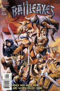 Battleaxes -4, written by Terry LaBan & illustrated by Alex Horley, is a sword and sorcery story set in the 9th century, featuring a group of female Norse mercenaries. In some ways a similar setting to LaBan’s Muktuk Wolfsbreath stories, but he was consciously exploring classic Robert E. Howard pulp novel conventions here. The big twist, of course, is that these are warrior women, so they constantly have to prove themselves to skeptical men. LaBan writes them as real women, but they’re portrayed in a pretty contemporary fashion, which makes the whole story seem somewhat anachronistic. Supernatural elements play a significant role as well, mainly in the form of a god who has a major role in the climactic battle. It’s a stark contrast to the current Vertigo series Northlanders, where Brian Wood attempts to always maintain historical accuracy. But the women all have distinct personalities, and have looks to match (courtesy of Horley), so there’s never any difficulty telling them apart. It’s a fun romp if you’re not expecting anything more.