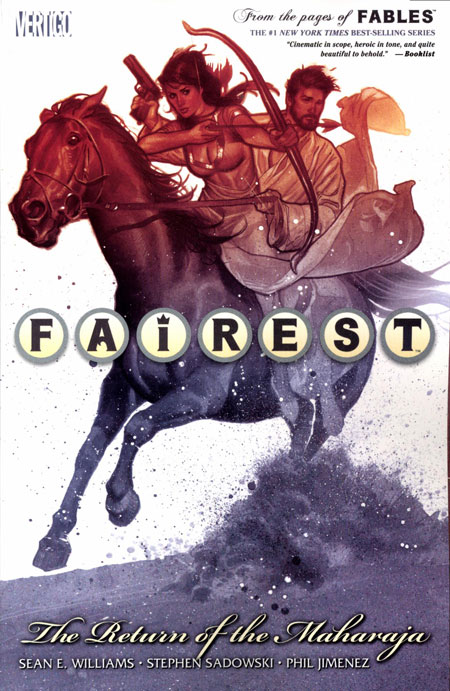 As the story ends Charming and Nalayani are returning to the Mundy together, so there may be further complications there, either in later Fairest stories or in Fables. The art starts out at a very high level, with Sadowski’s pencils and Jimenez’s inks. But as the story goes on six other artists contribute, often alternating pages within a single issue. They do a heroic job maintaining a level of visual consistency, but the stylistic shifts can’t help but distract sometimes.