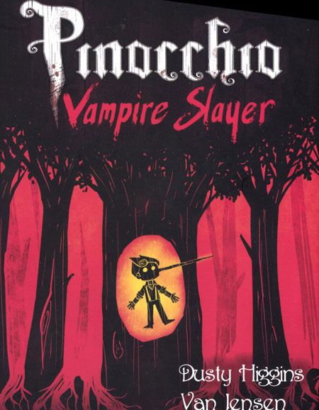 When they launched the book Jensen and Higgins were both new to comics, so they had no idea how successful it would be. They made the first volume self-contained, and it’s the shortest of the three. The connection between Pinocchio and vampires is made when vampires invade Pinocchio’s hometown and kill his father Geppetto. When Pinocchio tells a lie his nose grows into a stake, perfect for killing vampires, so he uses that for his mission of retribution. One of the funniest things in the book–and it’s often humorous–is the inventive series of lies Pinocchio tells to get his nose to grow. It’s also a built-in lie detector, so there’s additional humor when he tries to deceive one of his friends.