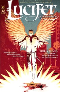 The title arc is a murder mystery, and it is as much about the angel Gabriel as it is about Lucifer. Gabriel is sent from heaven to kill Lucifer, who the heavenly host believe has murdered God. Lucifer says that he did not do the deed. But since he should have been the one, he proposes an investigation to uncover the real culprit. He also has a personal agenda, to rid himself of a mystical shard embedded in his body, and slowly working its way towards his heart. At the same time there is a parallel story line showing demonic influence in human affairs in Sulphur, Oklahoma (yes, that’s how they spell “sulfur”) and Norman, Oklahoma.