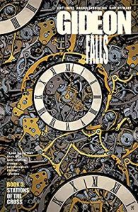 This installment centers around Father Burke. He had already become deeply involved in the mystery of Gideon Falls, but now he appears to be central to the story. It opens with him in the barn, with the One Who Smiles in the Dark (the red eyes and smiley face we have seen before). The priest follows his quarry, and immediately finds himself in alternate worlds. He first finds himself in a Wild West version of Gideon Falls, then a 19th century town. At this point he starts to make a map to keep track of the worlds he has travelled to (he labels the second “Frontier,” and the third “Steam”). Then there is a world where religion is outlawed, and one where he is called “Bishop” by the people there, who claim he asked them to wait for him, in “the village near the center.” He meets an older version of Dr. Xu, and sees a machine he does not recognize, but had built. Long-missing Danny is back home (grown to adulthood), but thinks he is Norton Sinclair. And when he visits his father in the hospital his father becomes the new doorway for the dark spirit from the Black Barn. Still confusing, but the shape of the narrative is starting to really take shape.