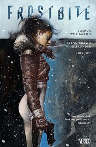 Frostbite is set in a frozen future dystopia (“Fifty-seven years into the new Ice Age”). The setting certainly isn’t unique–Snowpiercer immediately comes to mind–but the title disease is. This is not your garden-variety frostbite: it is a plague that freezes its victims from the inside out, and there is no vaccine or cure. Or maybe that is about to change: Keaton and the crew of her cross-country cargo hauler Icebreaker have been hired to transport Dr. Henry Bonham and his daughter, Victoria, 2,000 treacherous miles from snowbound Mexico City to a secret government installation on Alcatraz Island, where they can complete a theoretical cure.