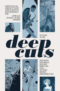 Finally, in “The Great Unknown” (Los Angeles, 1977), a jazz fusion band embarks on a world tour that may be their last. Keyboardist Alice goes on a research binge, and finds her way to “I’m Just Here for the Music,” as well as Leo Jones and Ace Stewart, closing the circle of the jazz history from earlier in the story. Toby Cypress provided effective cartoony art. I would be surprised to see any fusion band embrace traditional jazz this way–although all of the musicians would have studied it during their musical training–but it would be nice to see.